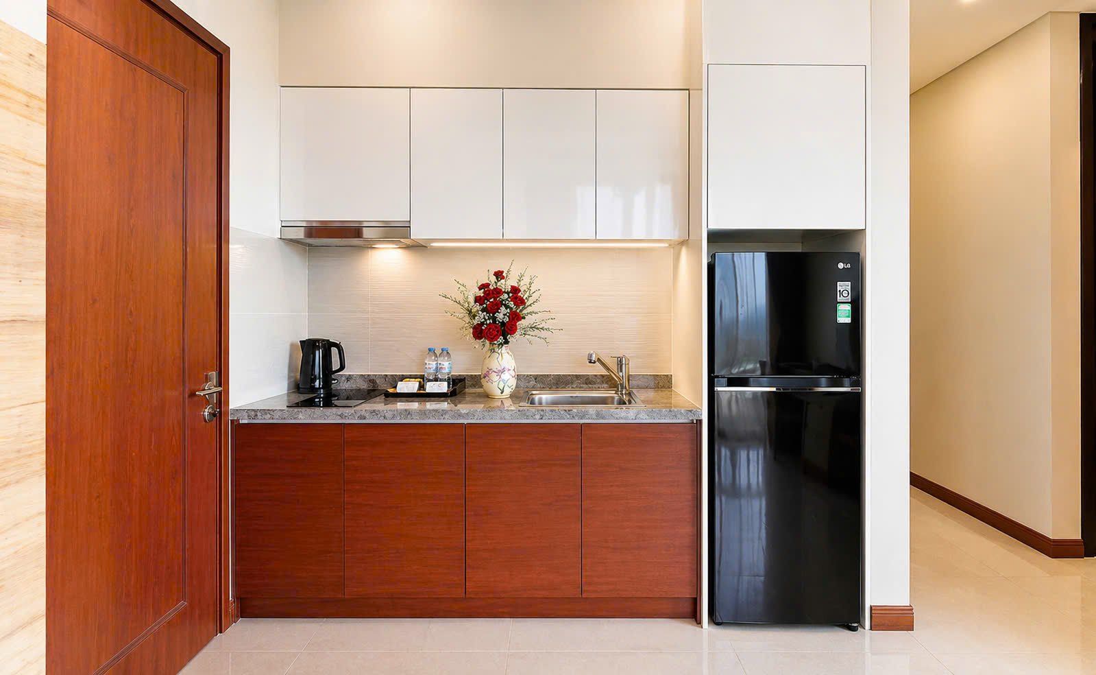 • Convenience: Mini fridge, kettle, hair dryer, and complimentary bottled water.